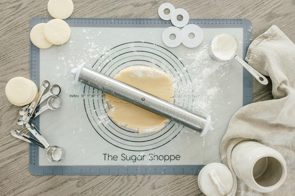 The Sugar Shoppe Adjustable Rolling Pin takes the guesswork out of getting perfectly even dough thickness.