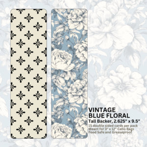 Tall Backers for Cookies or other small treats in "Black & Cream" Pattern with matching "Blue Floral" on the opposite side.