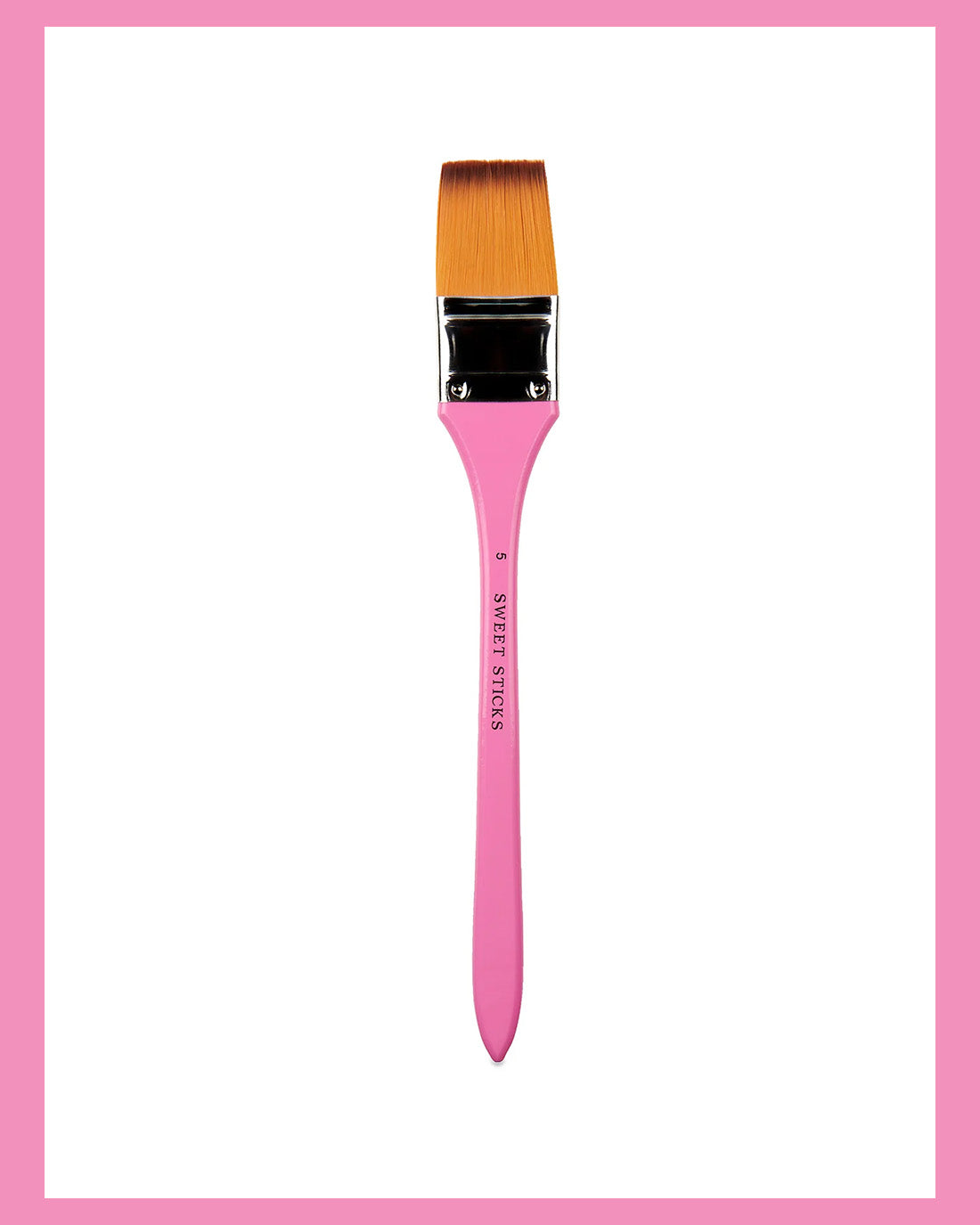 Flat brushes have a square end with medium to long bristles. They are great for wide strokes where you want a lot of paint coverage. If you are working on a surface where a wash brush might be too large, the flat brush gives you excellent coverage while also providing you a little more control over the wash brush.