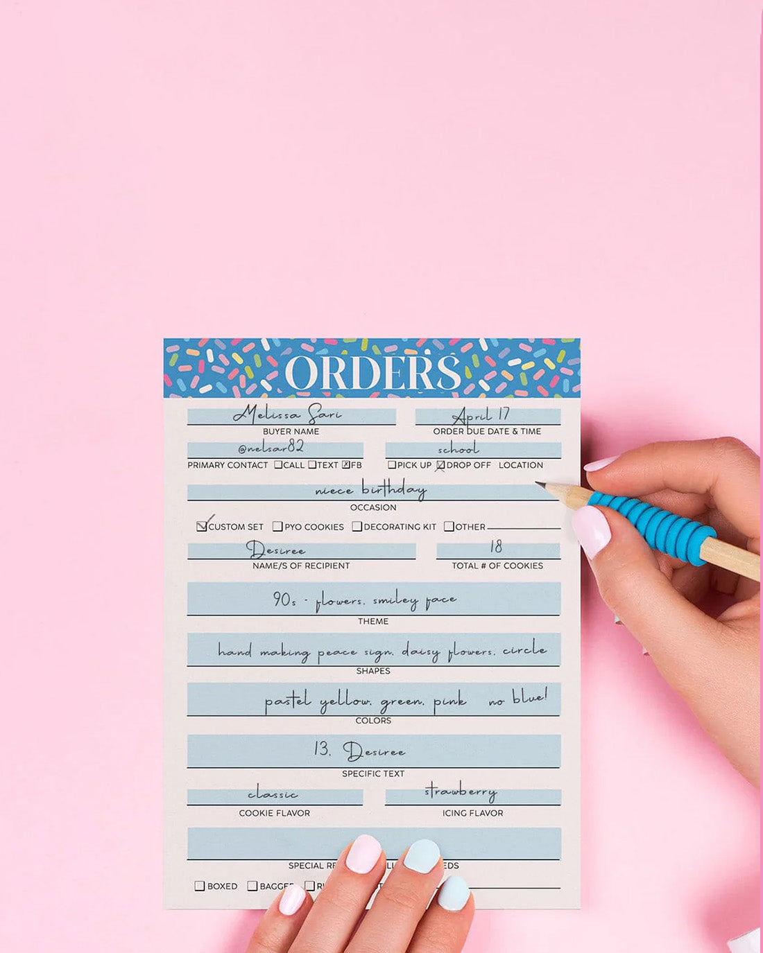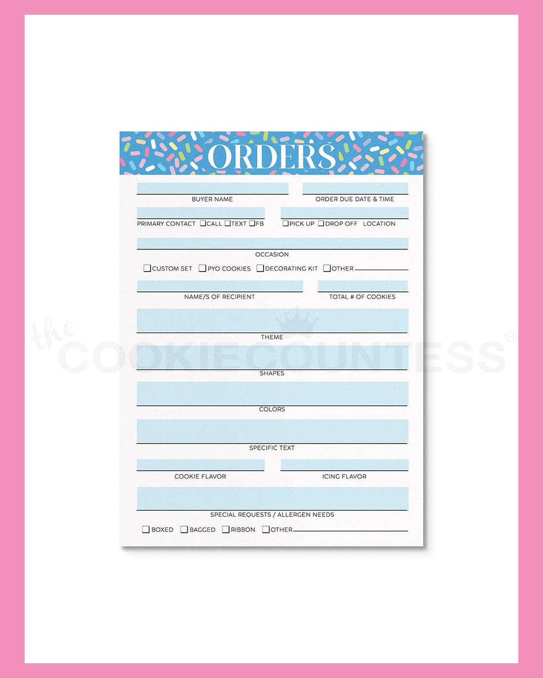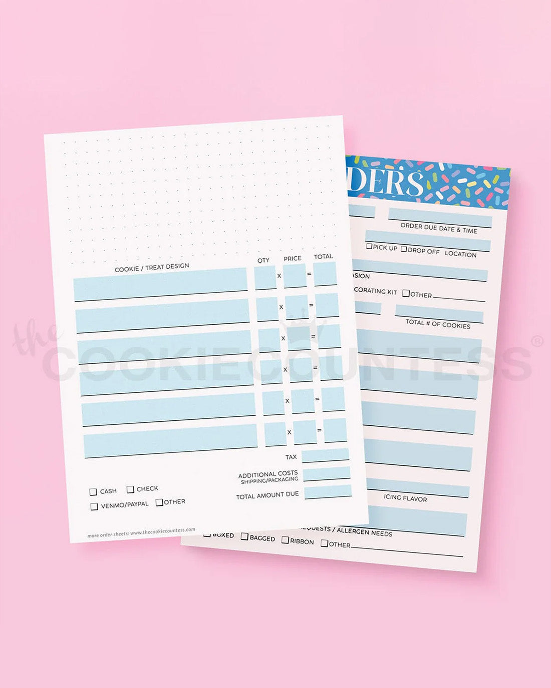 These cute sheets will help you plan your cookie orders. The back has an area for sketching and pricing planning.