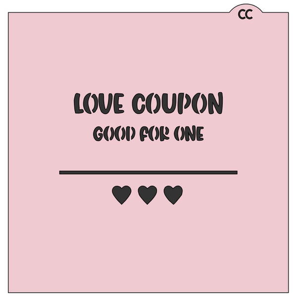 Stencil measures 5.5x5.5", words approx 1" wide each.