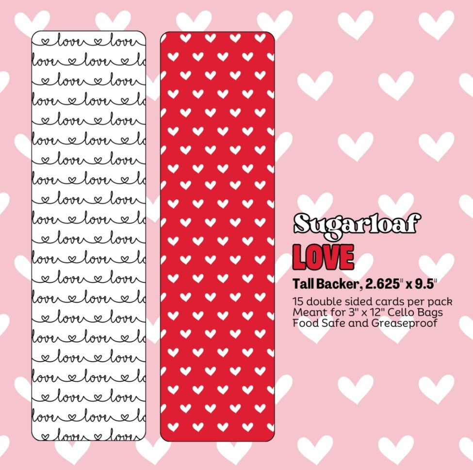 These backers are meant to fit 12" x 3" cello bags with 4 mini cookies inside! Tall backers come with 15 cards per pack!