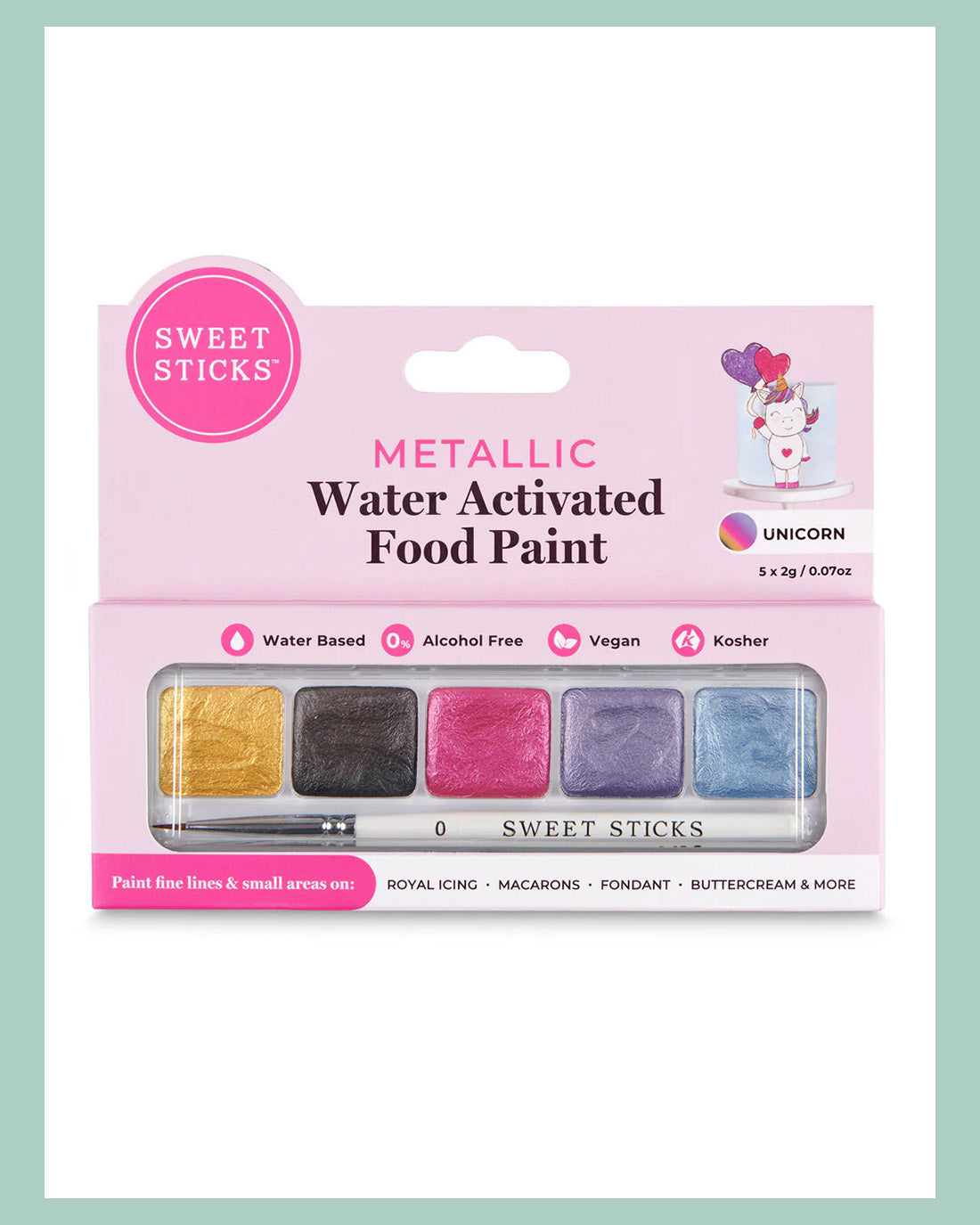 ActivateStir and Paint with our Water Activated Metallic Food Paint. A revolutionary way to decorate your cakes, desserts and cookies. With a unique blend of 100% edible ingredients our Water Activated Food Paint can paint, dry and be rub free in a really quick time on many surfaces making decorating quicker, easier and more cost effective.