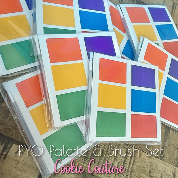 Sold in packs of 12 - each individual palette and brush set comes in a cellophane bag and ready to add to your PYO cookies!  Works out to $1.25 a set.