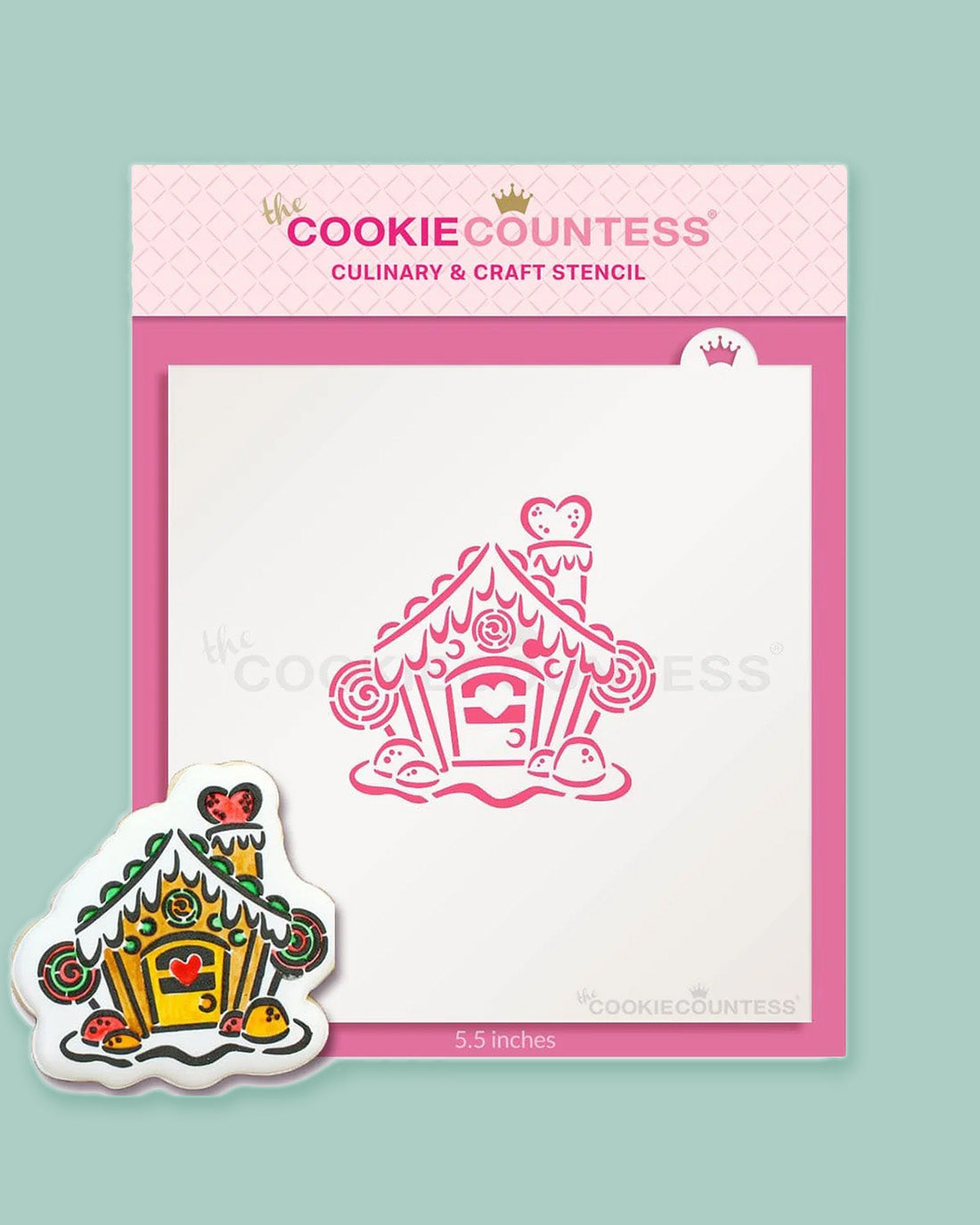 Gingerbread House PYO stencil. Original art for The Cookie Countess by illustrator Krista Heij-Barber.