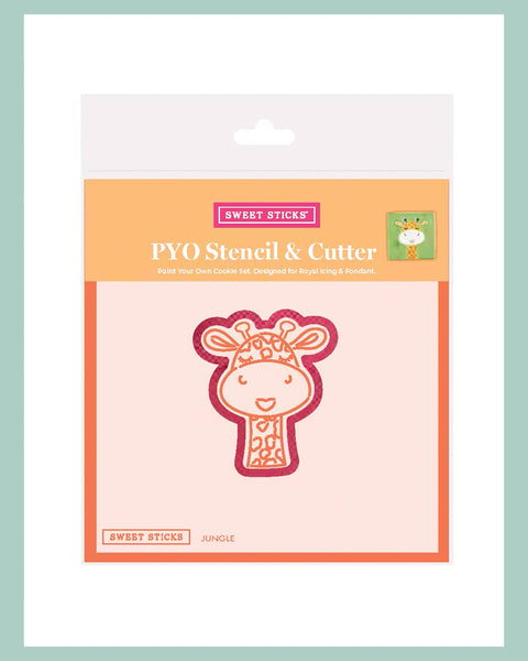 PYO Stencil and Cutter – Jungle Looking to create the perfect Paint Your Own Cookie base with ease? Look no further than our PYO Stencil & Cutter set! This convenient pack includes a Stencil & Cutter that will help you achieve the ideal base for painting. There are two easy ways to use this set to suit your preferences: 1- Royal Icing Method: Start by cutting and baking your cookie. Next, use the Stencil to scrape a layer of black Royal icing onto the cookie to form the outline. Once dry, your cookie is ready to be painted, creating a professional-looking finish in no time! 2- Fondant Method: Begin by cutting and baking your cookie, then use the stencil and roll it into fondant. Once you peel away the stencil, you’ll have a perfect raised pattern that’s ready to be painted. This method provides a unique texture and look that is sure to impress. With our PYO Stencil & Cutter, creating gorgeous and personalized painted cookies has never been easier. Get yours today and experience the convenience and quality of our product!