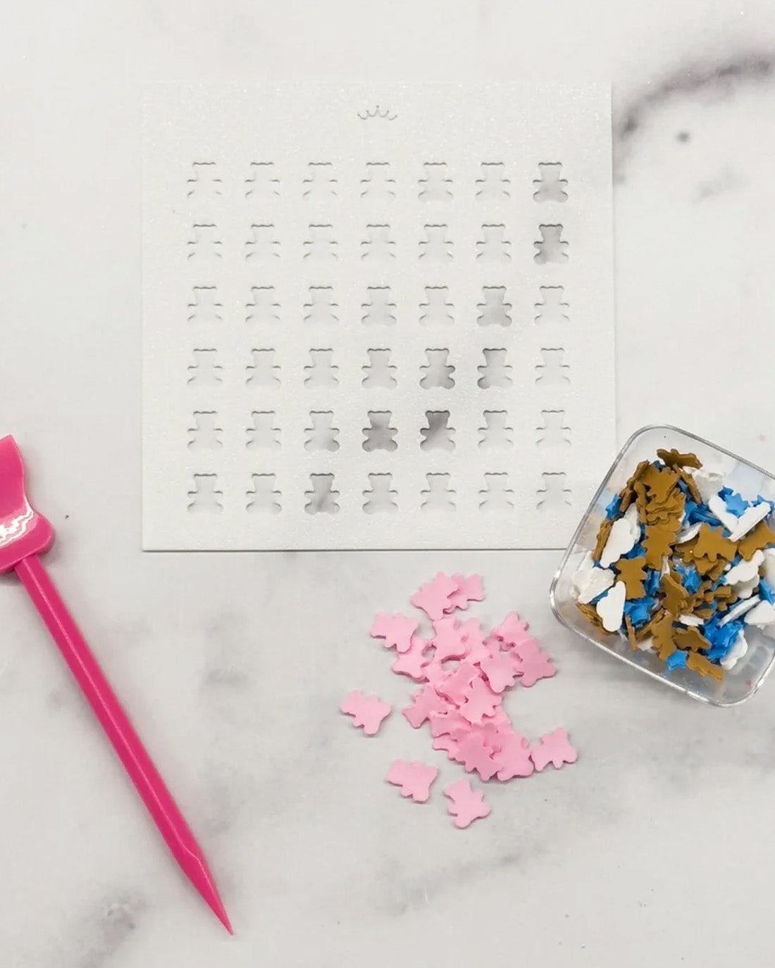 This is the perfect way to create your own custom color sprinkles, as you need them. Or use leftover royal icing and store for future use! Cookie Countess Sprinkle Stencils are thicker than regular cookie stencils and are made on their 3D printers.