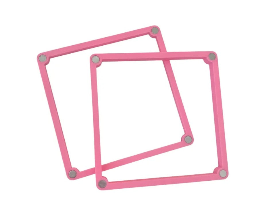 Cookie Couture's 3d printed holder will have you stenciling in no time! Place your stencil between the two magnetic frames to secure over top of your cookie. The frame has 2 sides of different thicknesses, 1/4” side & 3/8” so you can find the right fit.