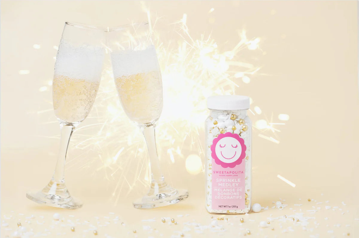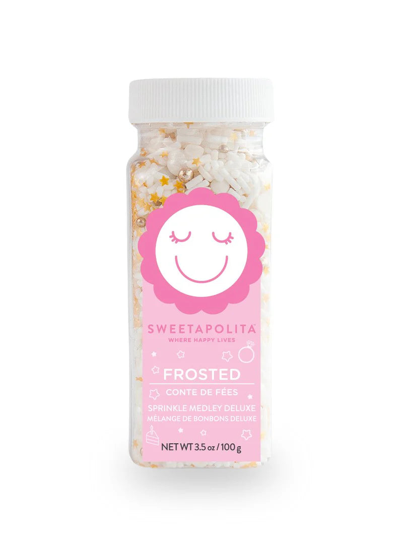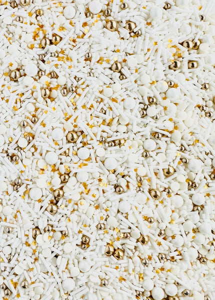 FROSTED Sprinkle Medley is one of the very first Sweetapolita Sprinkle Medleys, and lives on to be a favourite. All white and gold, this premium mix is perfect for formal sweets of all kinds!