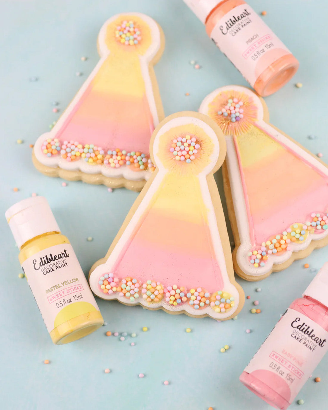 Our original Edible Art Paints can be applied a number of ways but we recommend good quality brushes (our range of premium food grade brushes are great for decorating). Sponge brushes are also great for large areas. The paint is ready to use straight from the bottle, so there is no need to mix it with any other ingredients. Once applied and dried the pigment is sealed within the surface – no dust or smudges! You are left with a beautiful solid matt colour. Our Original Edible Art Paint can paint on many surfaces such as: