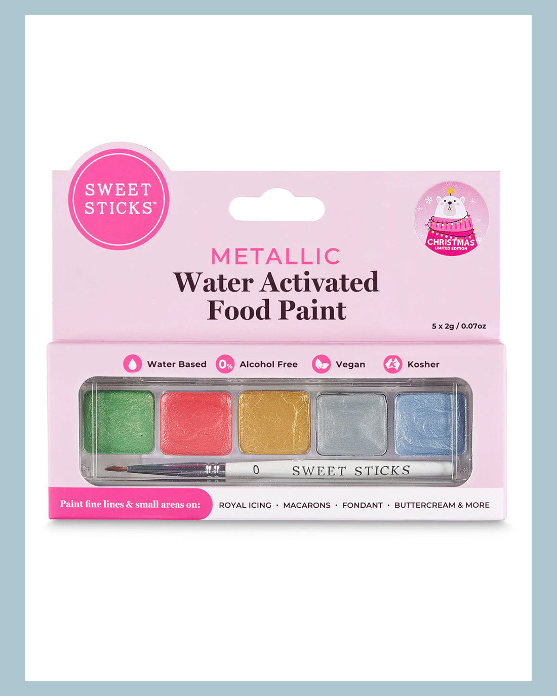The Water Activated Metallic Food Paints are designed for fine lines and small detailed areas.