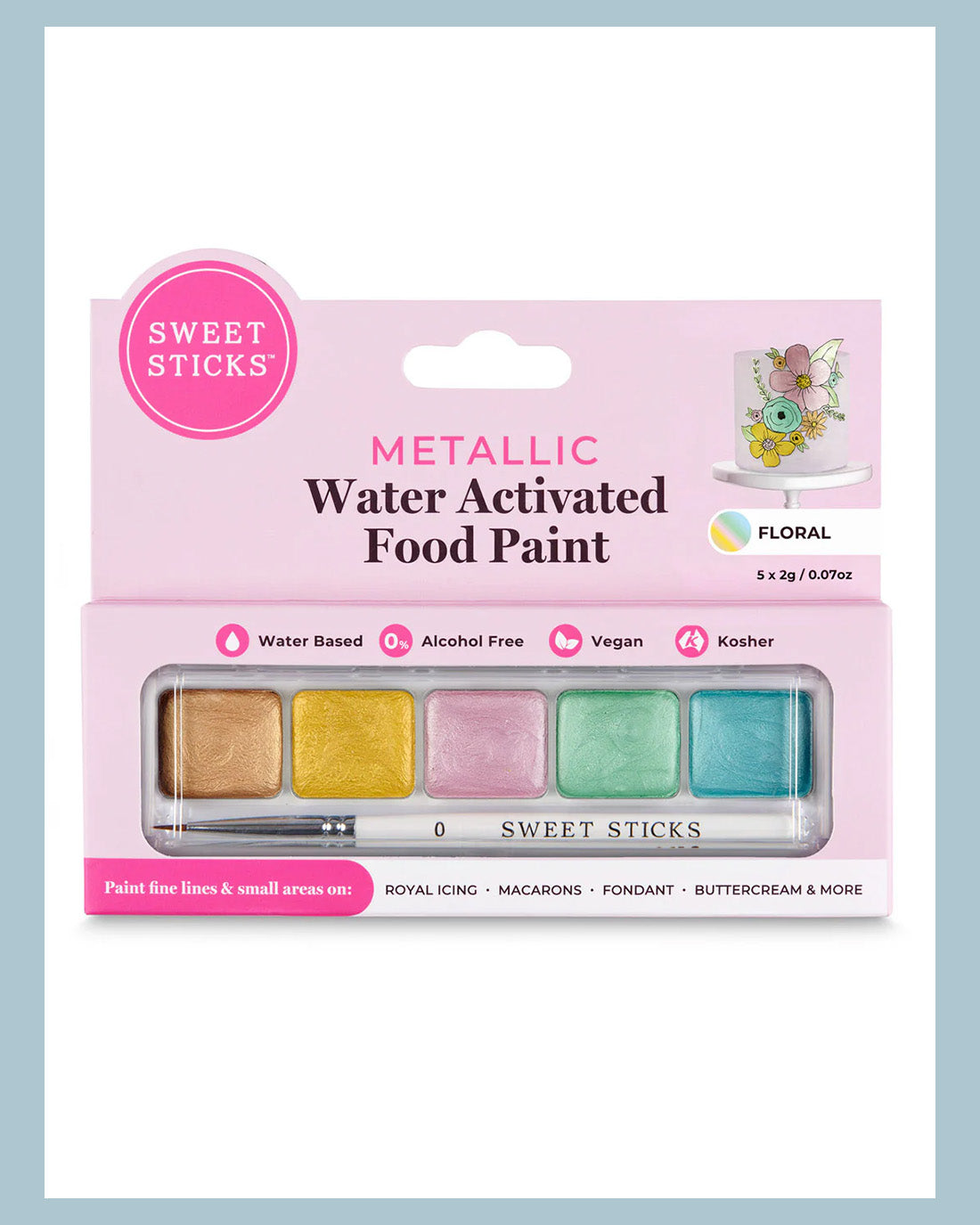 Activate, Stir and Paint with SWEET STICKS Water Activated Metallic Food Paint! A revolutionary way to decorate your cakes, desserts and cookies.