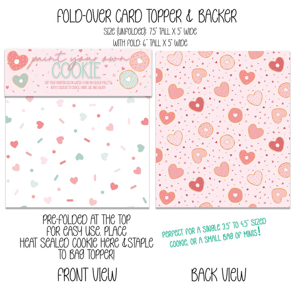 Made of top quality, thick, coated, food-safe cards, these are the perfect toppers for single cookies or a small bag of mini cookies! Simply staple your heat sealed cookie to the pre-folded bag topper at the top, and the long card provides a cute and sturdy background for your cookie. No box or bows required! There are printed designs on both the front and back of each card.
