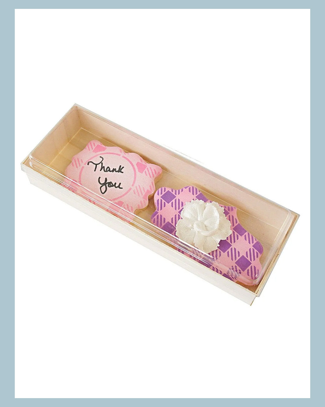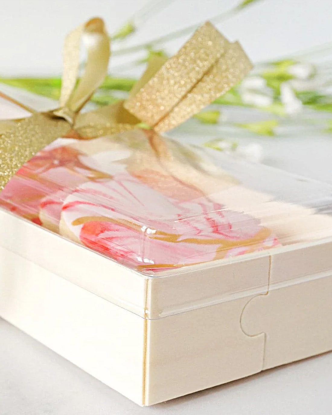 Package your beautiful cookies in these unique wooden boxes for an upscale presentation. Lightweight real wood! 8" x 2.75" x 1.25" Flat packed and have incredibly easy assembly! Adhesive strips already attached to the boxes.